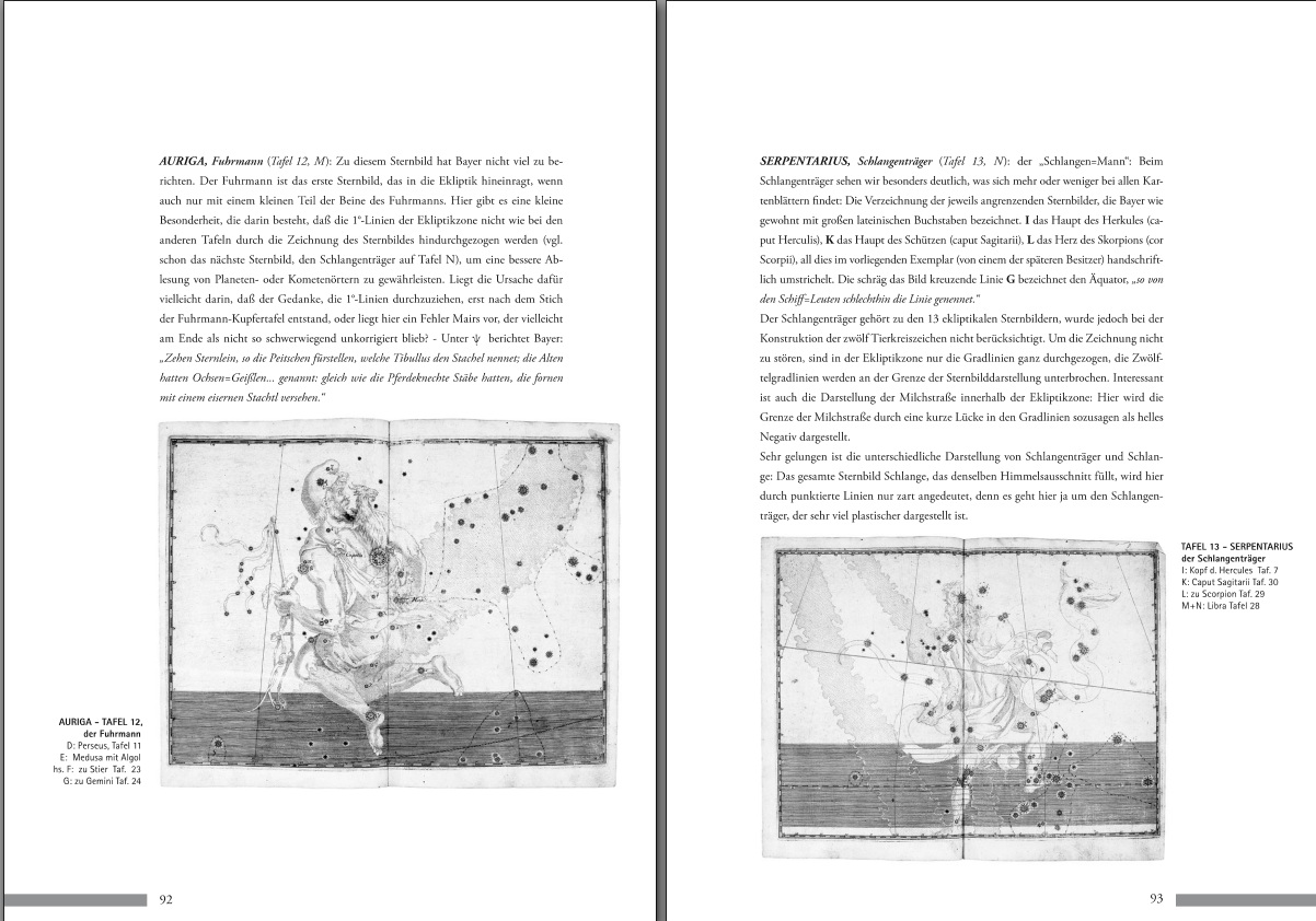 einiger Karten, Vergleichsbeispiele aus anderen Kartenwerken wie Flamsteed, Schiller, Bode, Piccolomini, Zacharias Bornmann und anderen.